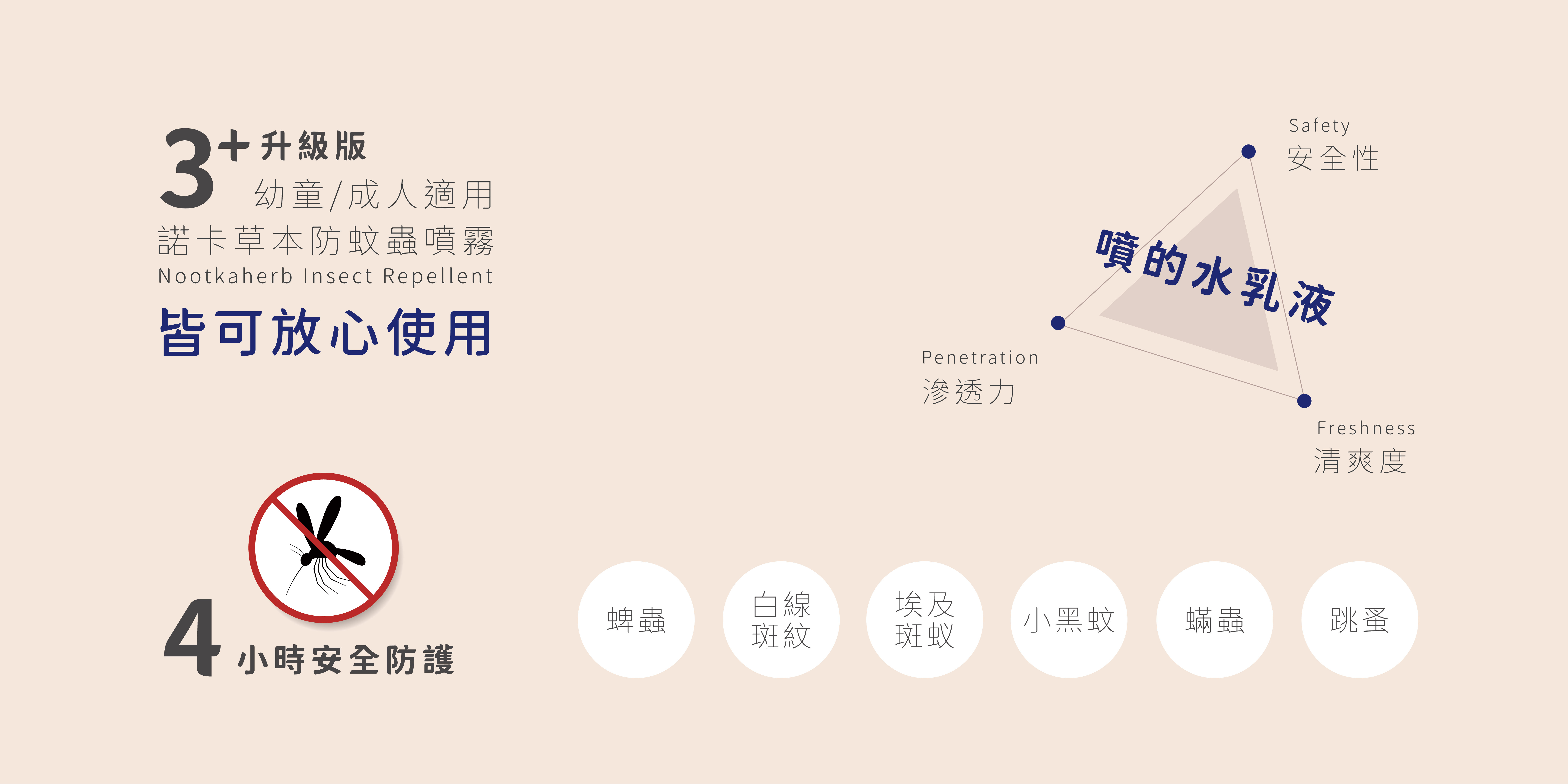 ❎無添加DEET,樟腦,經SGS檢驗無農藥及Paraben防腐劑,3歲孩童及成人適用,有效延長